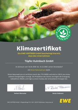 Diese Urkunde bestätigt die Kompensation von Treibhausgasemissionen durch zusätzliche Klimaschutzprojekte.